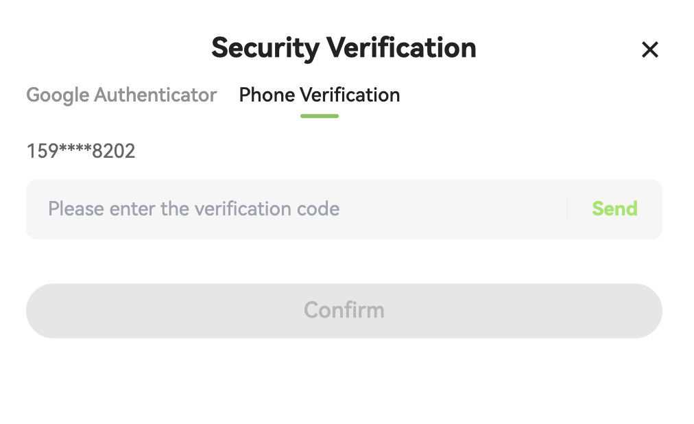 5. Complete the required security verification as prompted (for example: SMS, Email, or Google Authenticator)